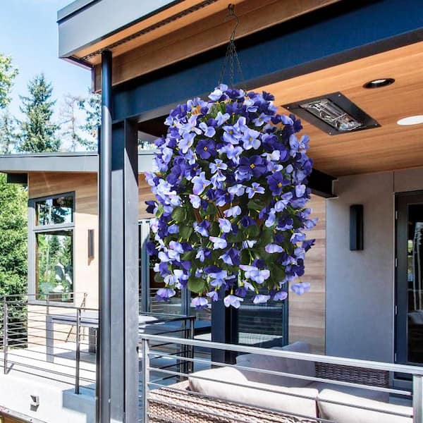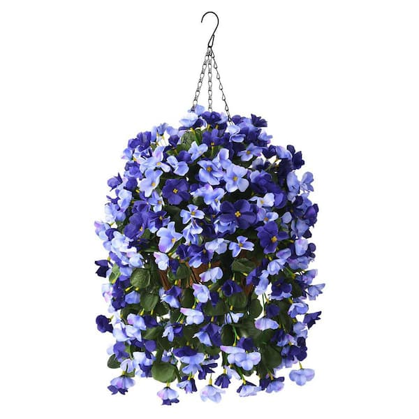 24.8 in. Deep Blue Artificial Hanging Begonia Flowers in Basket for Home Wedding Garden Decoration
