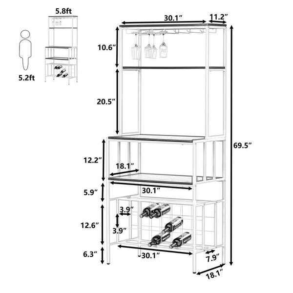 24-Bottles Industrial Modern 5-Tier Baker Rack Freestanding Bar Wine Rack Table with Glass& Cup Holders&Hooks White