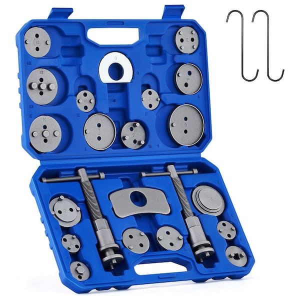 24 Piece Steel Brake Caliper Compression Tool Kit Universal Disc Brake Piston Compressor Wind Back Set with Case