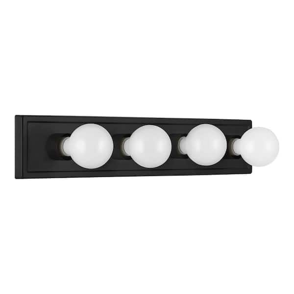 24 in. 4-Light Matte Black Mid-Century Vanity Light
