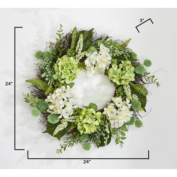 24 in. Artificial Hydrangea Wreath on Twig Base, Cream
