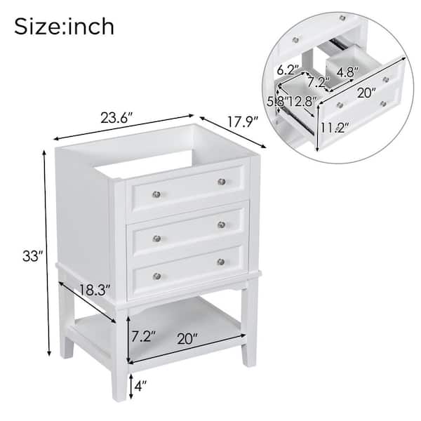 24 in. Bath Vanity Cabinet without Top in White with Drawer and Open Shelf, Bathroom Storage Cabinet Base Only