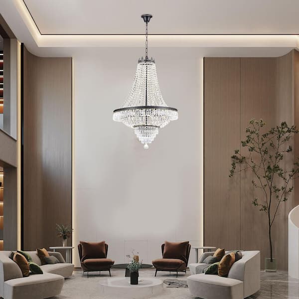 24 in. Black 9-Light Luxury Raindrop Classic Empire Style Adjustable Chain Chandelier with Crystal Shade for Foyer