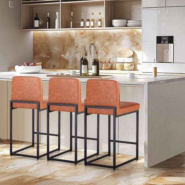 24 in. Brown PU Leather Counter Height Bar Stool with Metal Frame, Set of 2