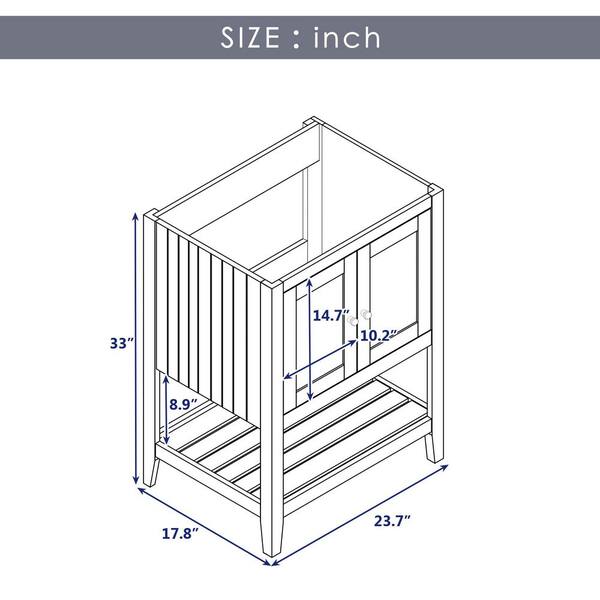 24 in. Freestanding Rectangular Bath Vanity Cabinet without Top in Gray with Soild Wood Frame, Door and Open Shelf