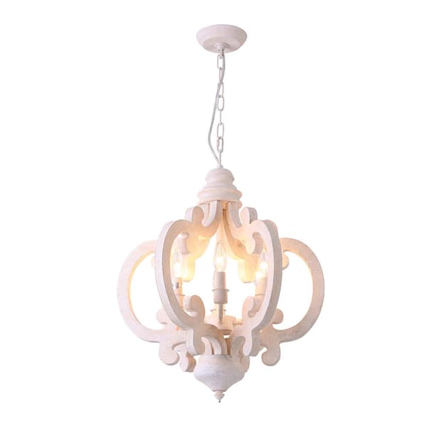 24 in. French Country 6-Light White Crown Chandelier Cottage Rustic Wooden Light