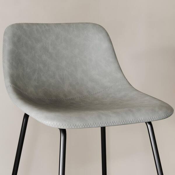 24 in. Gray Faux Leather Upholstered Bar Stool With Metal Leg Counter Bar Stool (Set of 4)