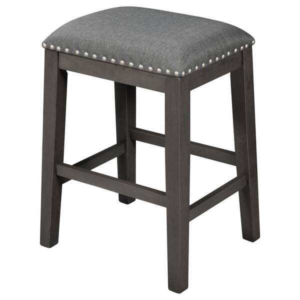 24 in. H Gray Rustic Farmhouse Dining Room Wooden Upholstered Stools with Trim (Set of 2)