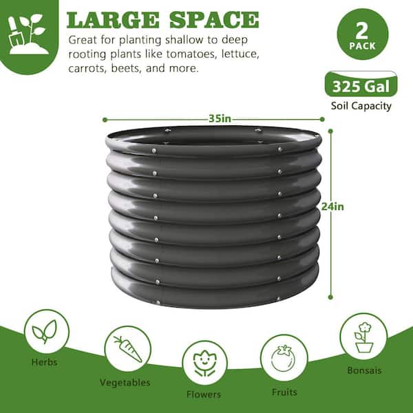 24 in. H Outdoor Round Metal Galvanized Raised Planter Boxes Planter Box, Anti-Rust and Easy-Setup, (2-Pack)