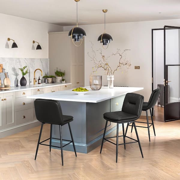24 in. Modern Metal Frame Black Faux Leather Upholstered Counter Stools with Footrest Set of 3