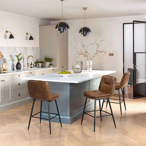 24 in. Modern Metal Frame Dark Brown Faux Leather Upholstered Counter Stools with Footrest Set of 2