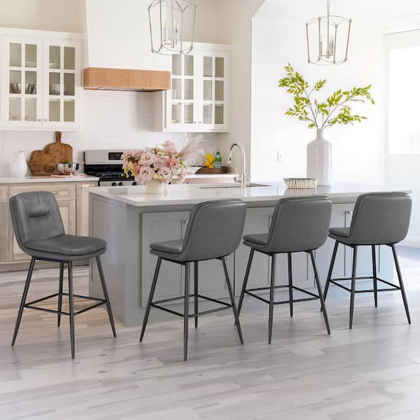 24 in. Modern Metal Frame Gray Faux Leather Upholstered Counter Stools with Footrest Set of 4