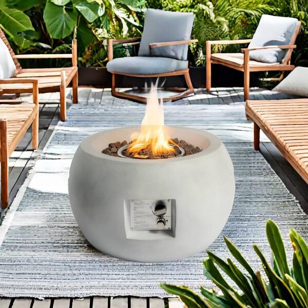 24 in. Propane Round Fire Pit Table, Stone 40000 BTU Gas Firepits with Free Lava Rocks and Waterproof Cover