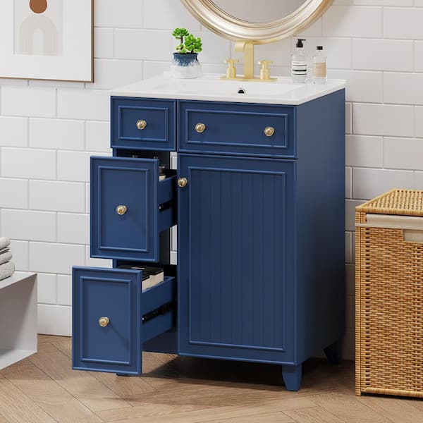 24 in. W Freestanding Bath Vanity in Blue with White Ceramic Top