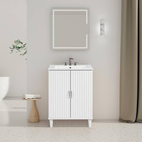 24 in. W Modern Elegant Freestanding Sink Bathroom Vanity in White with,Doors and Adjustable Shelves