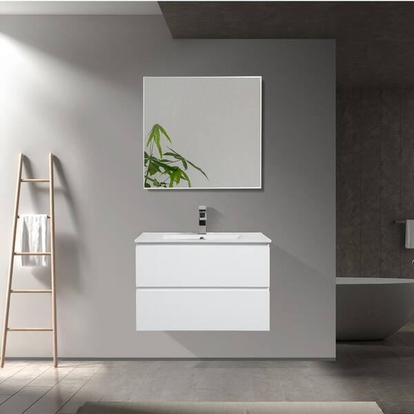 24 in. W Modern Style Floating Wall-Mounted Bathroom Vanity with White Single Sink in White