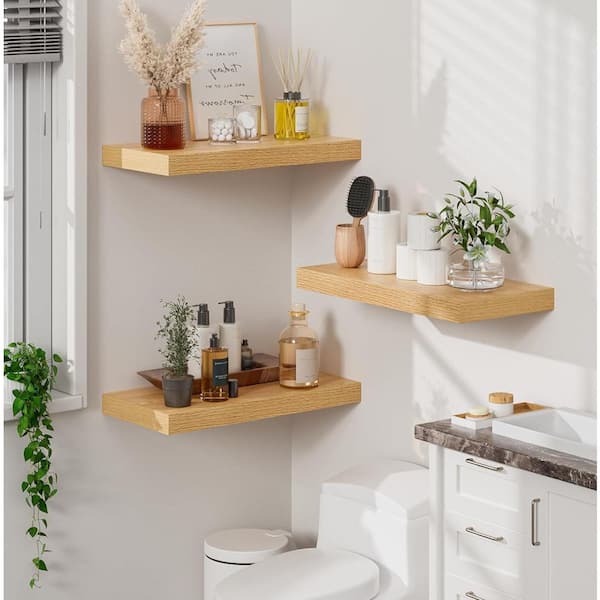 24 in. W x 12 in. D Oak Wood Floating Shelves for Wall(Set of 2) Decorative Wall Shelf