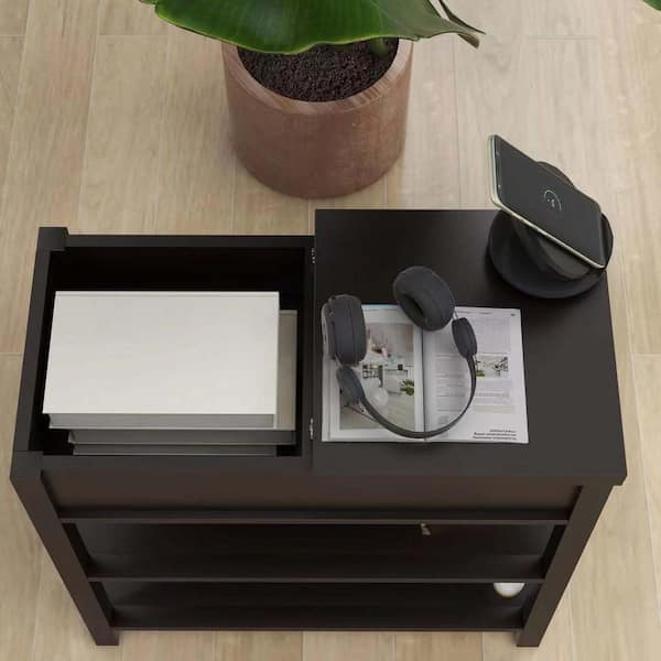 24 in. W x 12 in. D x 24 in. H Brown Linen Cabinet, Narrow Sided Table with Drawers and Bottom Partition