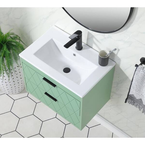 24 in. W x 15.5 in. D x 18.5 in. H Floating Green Bath Vanity with White Ceramic Sink Top with Single sink Unassembled