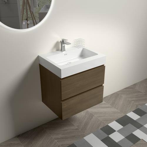 24 in. W x 18.1 in. D x 20.5 in. H Floating Bath Vanity in Dark Oak with 1-White Glossy Sink Solid Surface Top