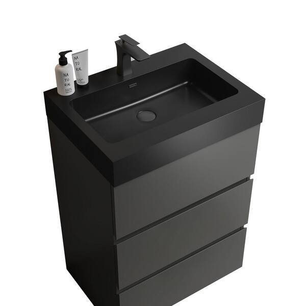 24 in. W x 18.1 in. D x 37 in. H Single Sink Freestanding Bath Vanity in Gray with Black Engineered Stone Top