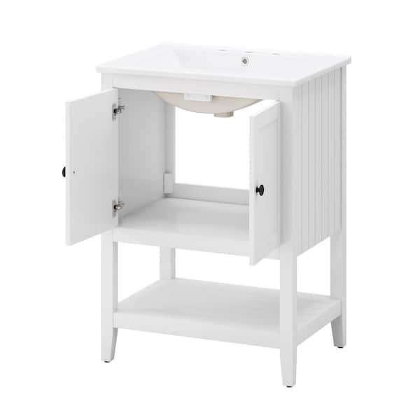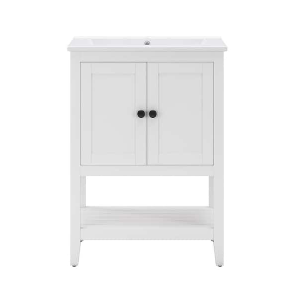24 in. W x 18.3 in. D x 33.5 in. H Freestanding Bathroom Vanity Set in White with White Ceramic Top