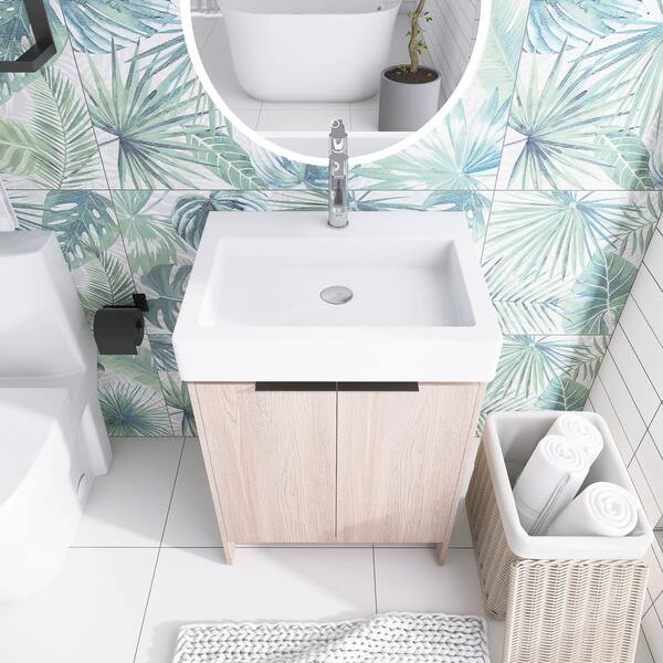 24 in. W x 18.5 in. D x 34 in. H Freestanding Bath Vanity in White Oak with White Ceramic Top