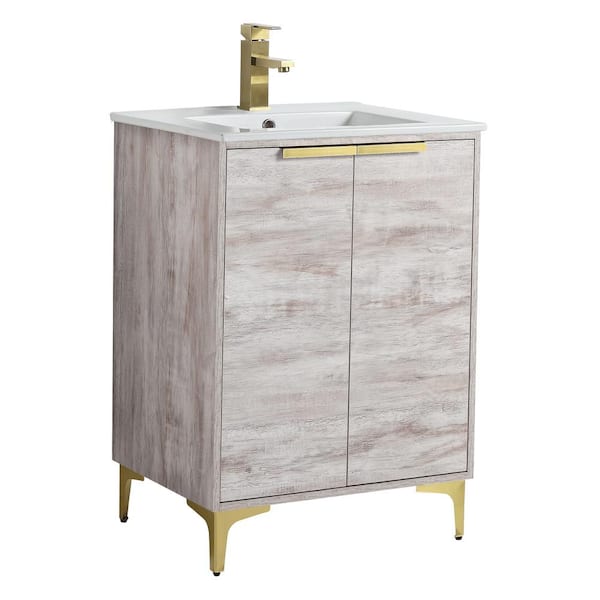 24 in. W x 18.5 in. D x 35.25 in. H Bath Vanity in Rustic White with Satin Brass Hardware and White Ceramic Sink top