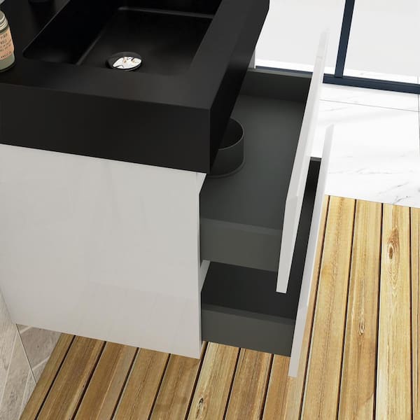 24 in. W x 18 in. D x 25 in. H Wall-Mounted Bath Vanity in White with Black Solid Surface Top