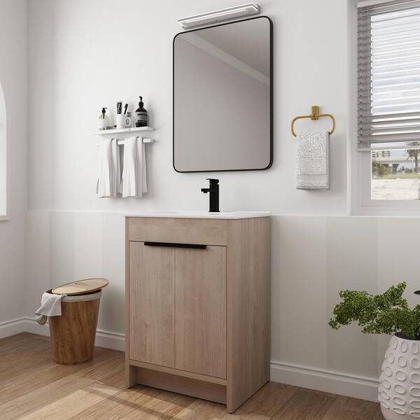 24 in. W x 18 in. D x 34 in. H Freestanding Single Sink Bath Vanity in Plain Light Oak with White Ceramic Top