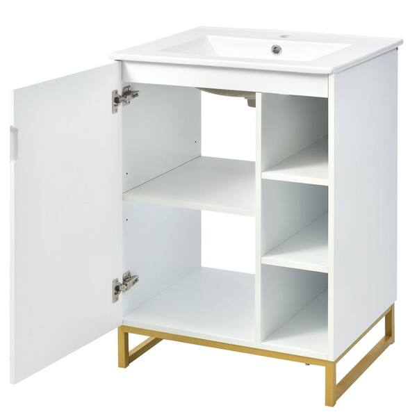 24 in. W x 18 in. D x 34 in. H Single Sink Freestanding Bath Vanity in White with White Ceramic Top
