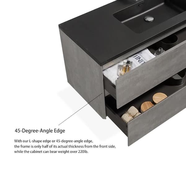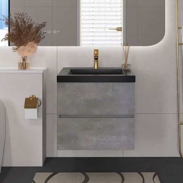 24 in. W x 19 in D x 21 in. H Single Sink Bathroom Vanity Side Cabinet in Cement Grey with Black Solid Surface Top