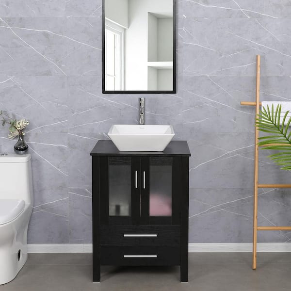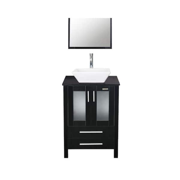 24 in. W x 20 in. D x 32 in. H Single Sink Bath Vanity in Black with White Ceramic Vessel Sink Top Chrome Faucet Set