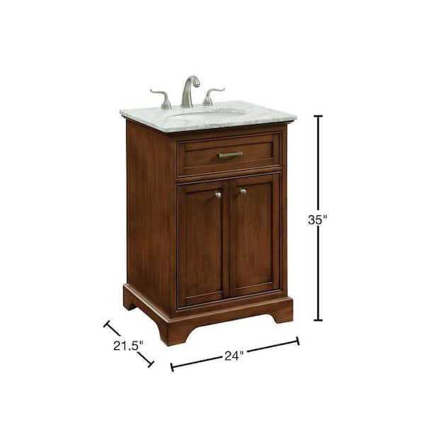 24 in. W x 21.5 in. D x 21.5 in. H Single Bathroom Vanity in Teak with White Marble Vanity Top and White Basin