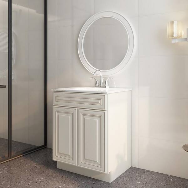 24 in. W x 21 in. D x 34.5 in. H in Cameo White Plywood Ready to Assemble Vanity Base Kitchen Cabinet.