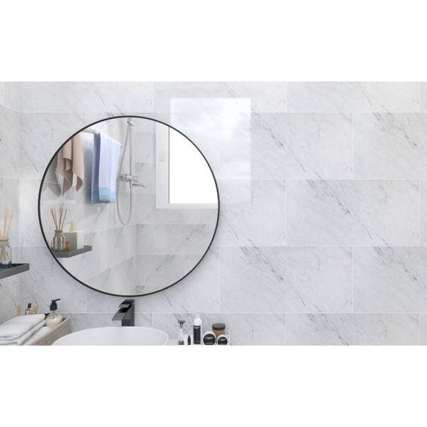 24 in. W x 24 in. H Large Round Metal Framed Wall Bathroom Vanity Mirror in Black