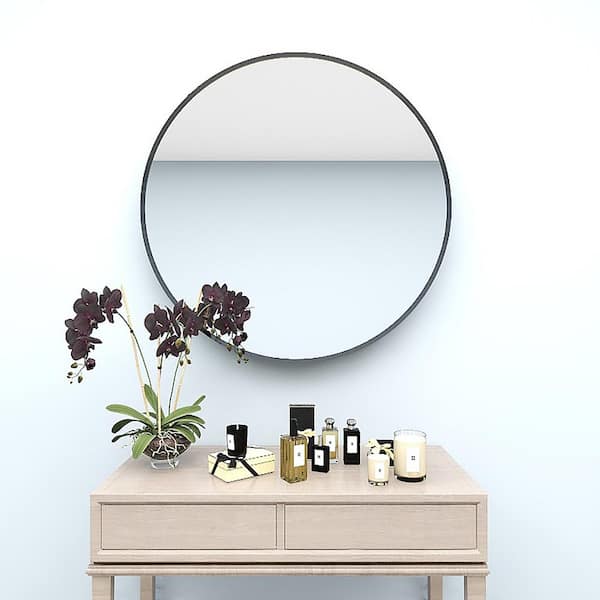 24 in. W x 24 in. H Modern Round Black Aluminum Framed Wall Bathroom Vanity Mirror in Black