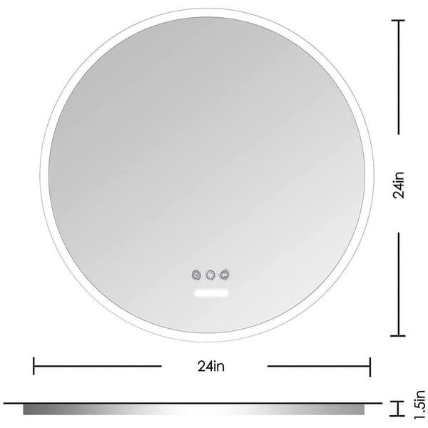 24 in. W x 24 in. H Round Frameless LED Anti-Fog Wall Mount Modern Decorative Bathroom Vanity Mirror