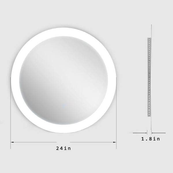 24 in. W x 24 in. H Round Frameless LED Wall Mount Anti-Fog Dimmable Bathroom Vanity Mirror