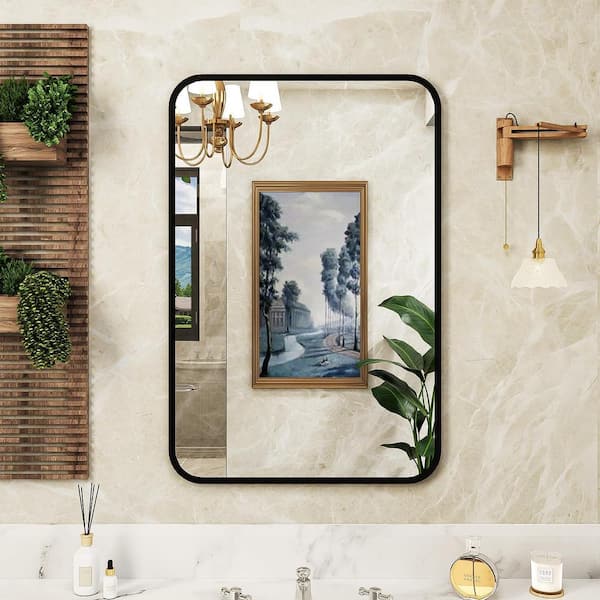 24 in. W x 30 in. H Rectangular Black Metal Framed Wall Mount or Recessed Bathroom Medicine Cabinet with Mirror
