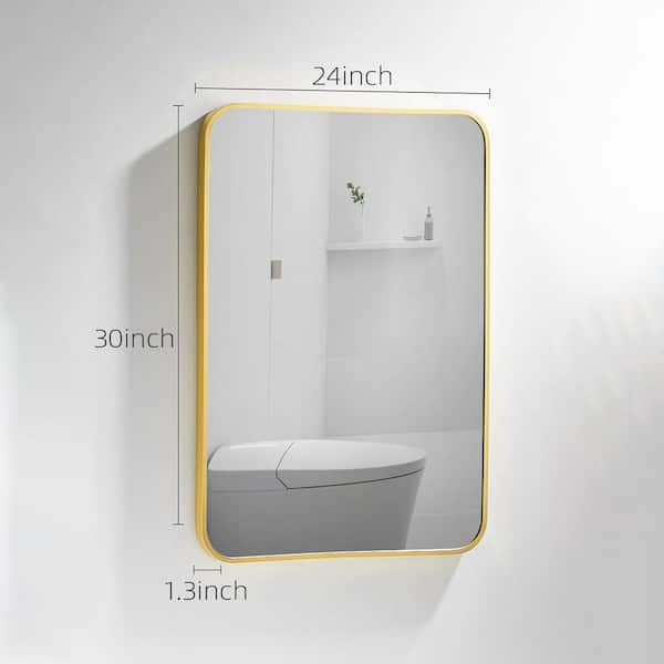24 in. W x 30 in. H Rectangular Steel Framed Dimmable Wall Bathroom Vanity Mirror in Gold