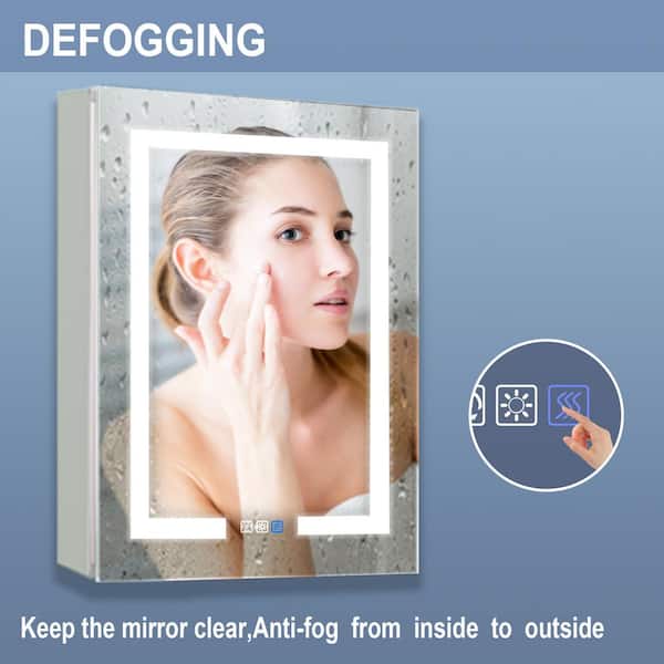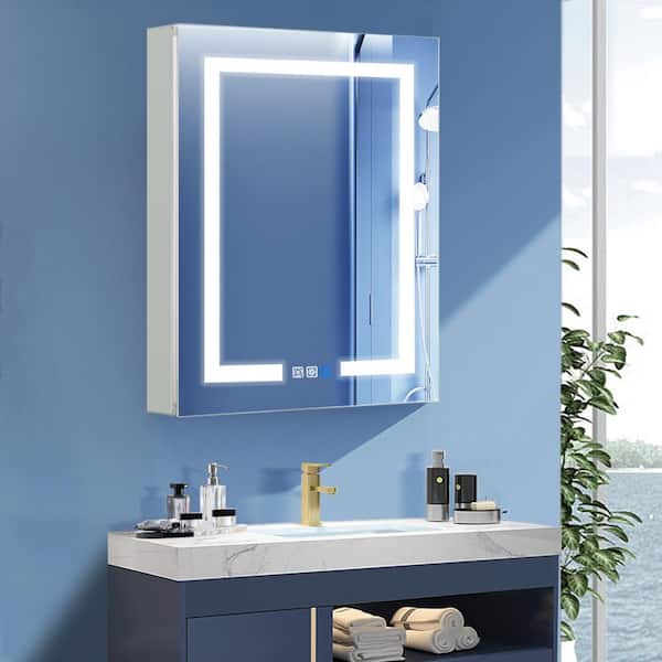 24 in. W x 30 in. H Silver Rectangular Recessed/Surface Mount Lighted Medicine Cabinet with Mirror, Dimming, Right Door