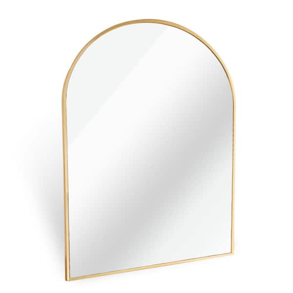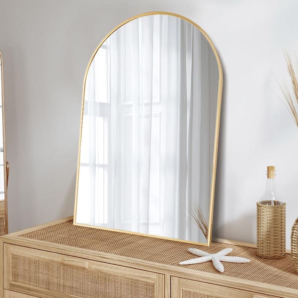 24 in. W x 32 in. H Arched Framed Freestanding Bathroom Vanity Mirror in Gold for Bathroom, No installation required