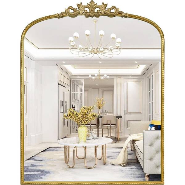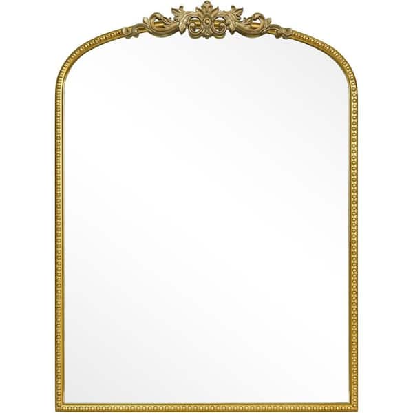 24 in. W x 32 in. H Crown Arch Iron Framed Wall Bathroom Vanity Mirror in Gold