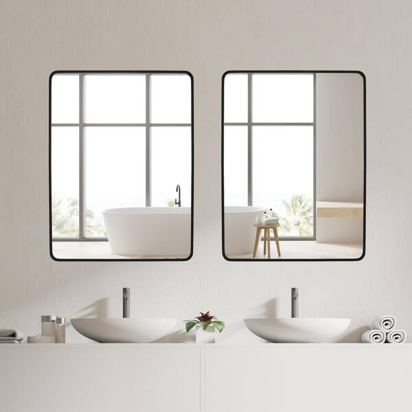 24 in. W x 32 in. H Large Rectangular Aluminum Alloy Framed Wall Mounted Bathroom Vanity Mirror in Black