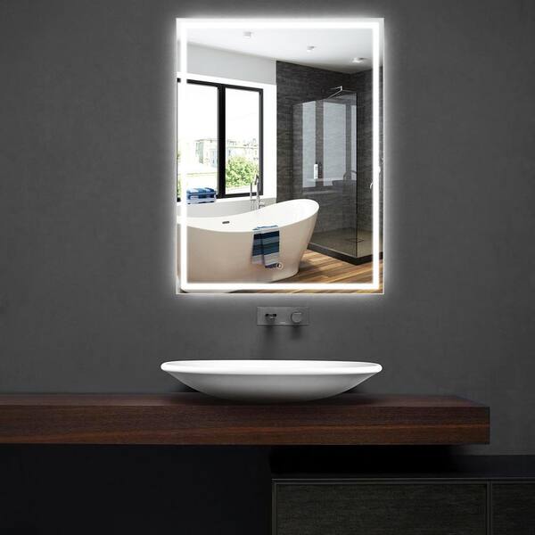 24 in. W x 32 in. H Medium Rectangular Frameless LED Light Anti-Fog Wall Mounted Bathroom Vanity Mirror in Silver