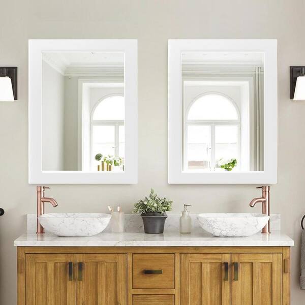 24 in. W x 32 in. H Modern Simple Rectangular White Wood Frame Bathroom Vanity Mirror Wall Mirror/Floor Mirror