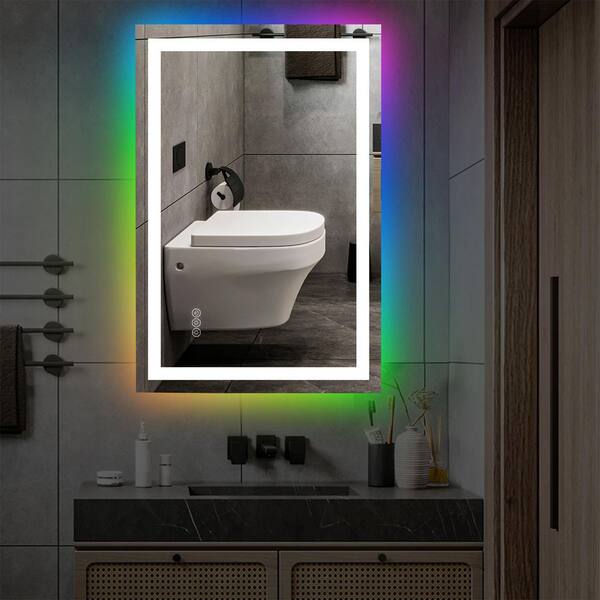 24 in. W x 32 in. H RGB Rectangular Frameless Anti-Fog Wall Mounted Bathroom Vanity Mirror