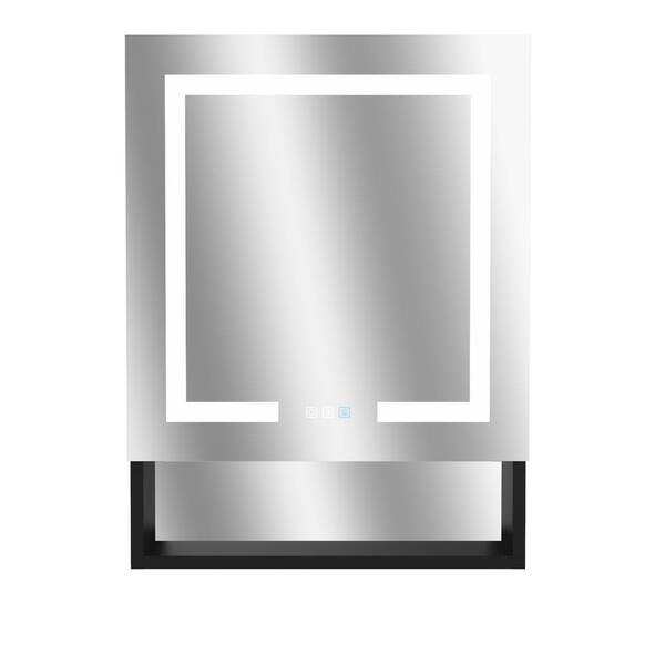 24 in. W x 32 in. H Rectangular Black Aluminum Recessed/Surface Mount Medicine Cabinet with Mirror LED and Open Shelf