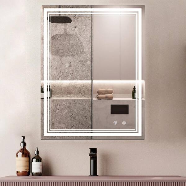 24 in. W x 32 in. H Rectangular Framed LED Mirror Dimmable Wall Mounted Bathroom Vanity Mirror in Silver